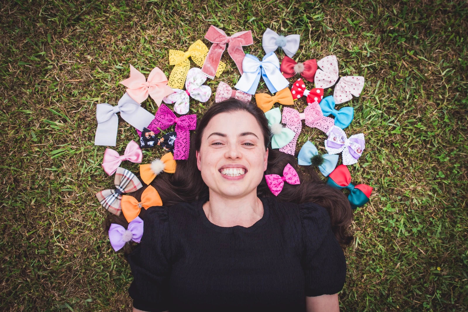 Cada bandolete com laço é cuidadosamente confeccionada à mão, refletindo a dedicação e o talento artesanal...